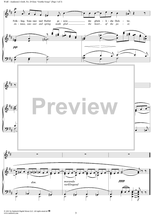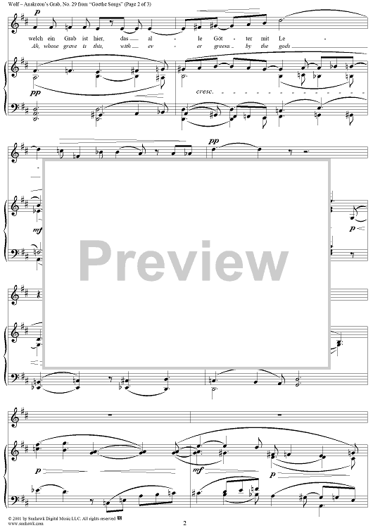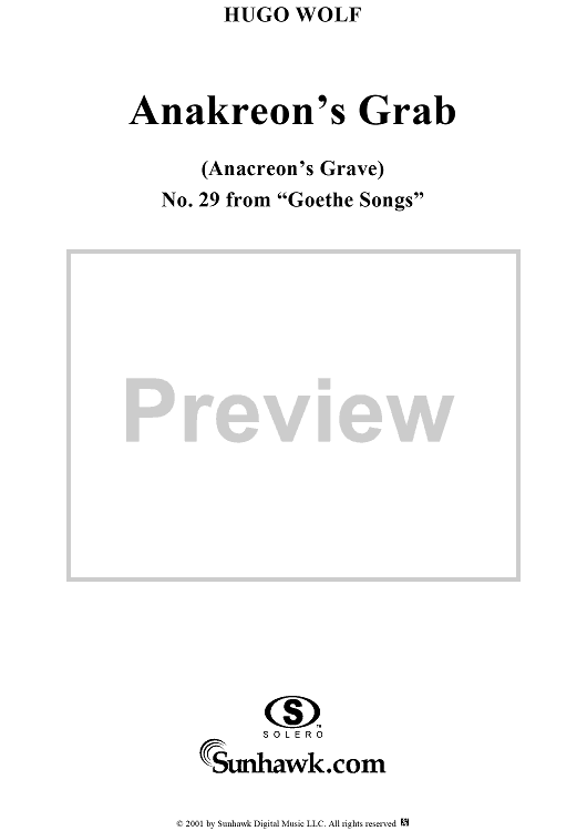 Digital Sheet Music for Goethe Lieder, No. 29 - Anakreon's Grab by Johann Wolfgang von Goethe, Hugo Wolf scored for Voice/Piano; id:263375