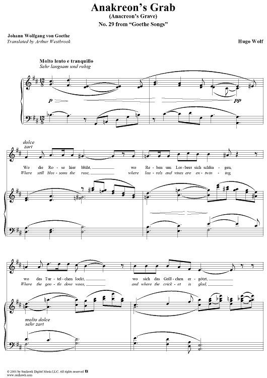 "Goethe Lieder, No. 29 - Anakreon's Grab" Sheet Music by Hugo Wolf