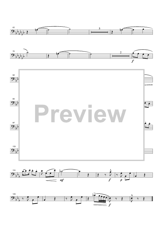 Digital Sheet Music for Golliwogg's Cakewalk - Trombone by Claude Debussy, Bryan Doughty scored for Brass Quintet; id:319186