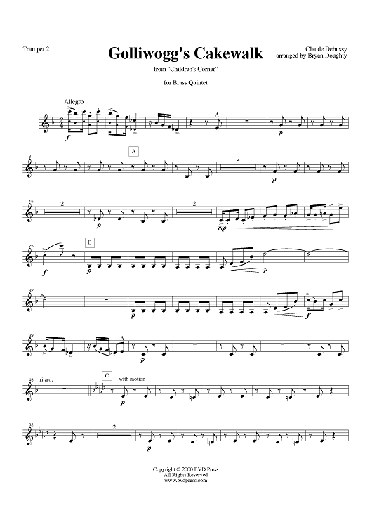 Digital Sheet Music for Golliwogg's Cakewalk - Trumpet 2 by Claude Debussy, Bryan Doughty scored for Brass Quintet; id:319184