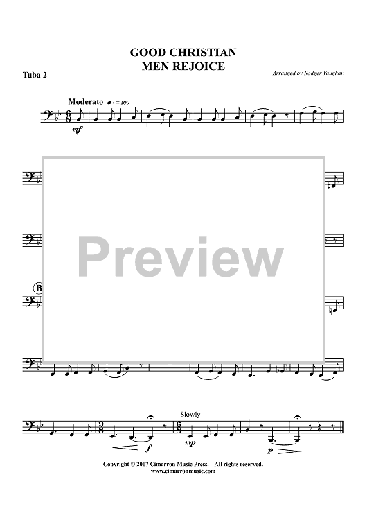 Digital Sheet Music for Good Christian Men Rejoice - Tuba 2 by Rodger Vaughan, Traditional scored for Tuba Quartet; id:413562
