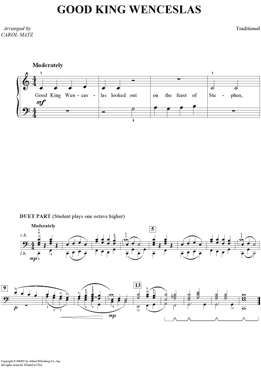Digital Sheet Music for Good King Wenceslas by Carol Matz, Traditional scored for Piano; id:453574