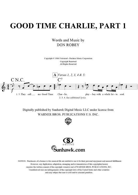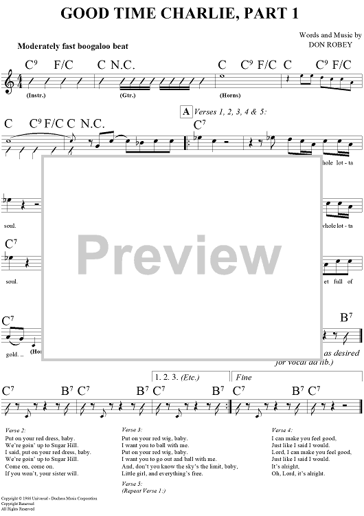 Digital Sheet Music for Good Time Charlie, Part 1 by Don Robey scored for Lead Sheet; id:291019
