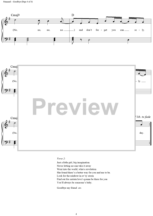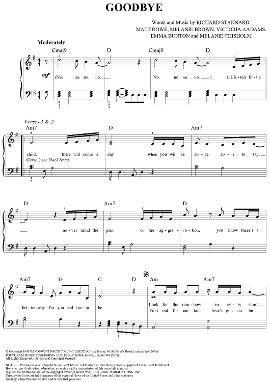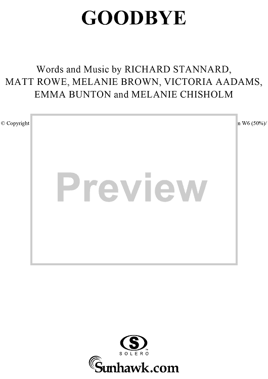 Digital Sheet Music for Goodbye by Emma Bunton, Victoria Addams, Melanie Brown, Mel C, Matt Rowe, Richard Stannard, Stephen Duro, Spice Girls scored for Easy Piano/Vocal; id:240661