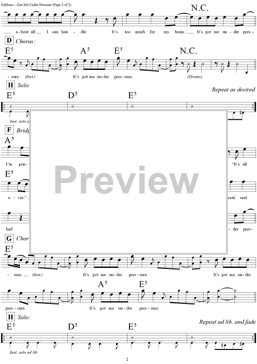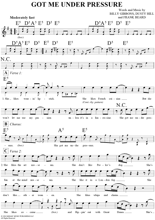 Digital Sheet Music for Got Me Under Pressure by Billy Gibbons, Dusty Hill, Frank Beard scored for Lead Sheet; id:293931