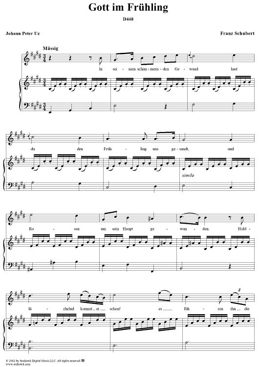 Digital Sheet Music for Gott im Frühlinge, D448 by Franz Schubert scored for Voice/Piano; id:256609