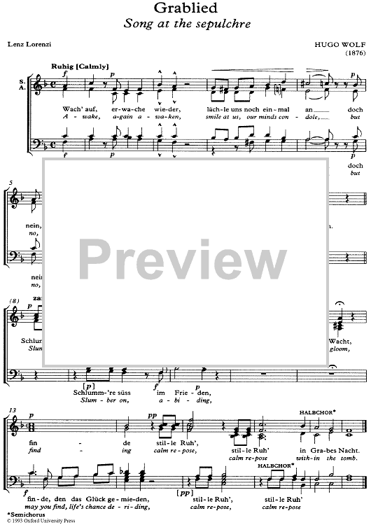 Digital Sheet Music for Grablied by Hugo Wolf scored for SATB Choir; id:336827