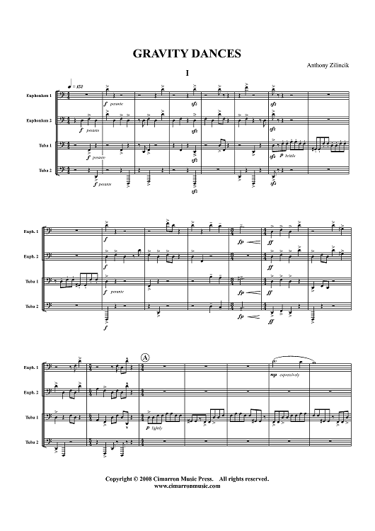 Digital Sheet Music for Gravity Dances - Score by Anthony Zilincik scored for Tuba Quartet; id:415961