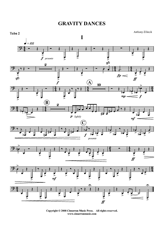 "Gravity Dances - Tuba 2" Sheet Music by Anthony Zilincik