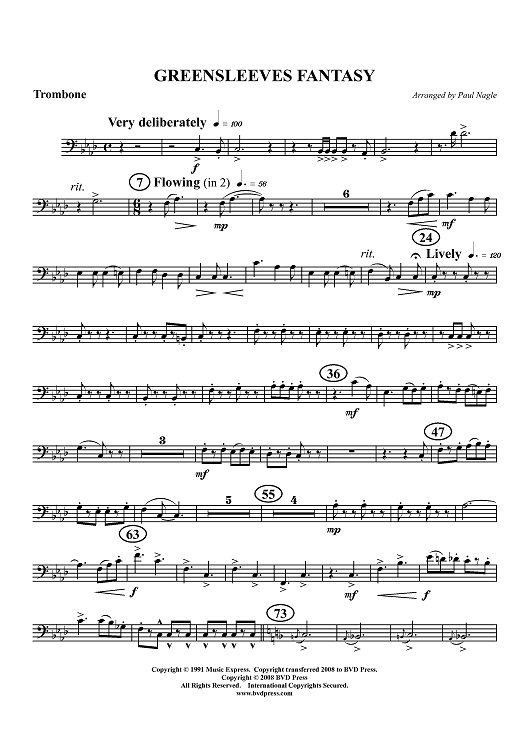 Digital Sheet Music for Greensleeves Fantasy - Trombone by Traditional, Paul Nagle scored for Brass Quintet; id:405061