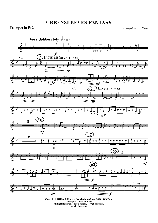 "Greensleeves Fantasy - Trumpet 2" Sheet Music by Traditional