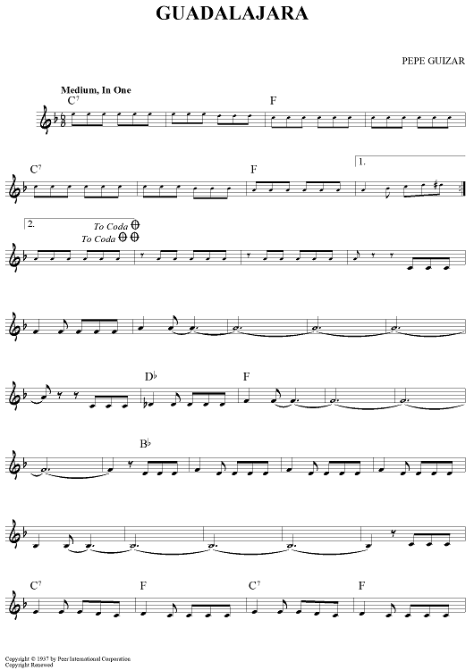 "Guadalajara" Sheet Music by Pepe Guizar