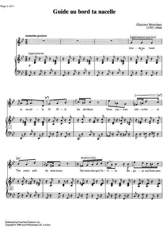 Digital Sheet Music for Guide au bord ta nacelle by Giacomo Meyerbeer scored for Soprano/Piano; id:332569