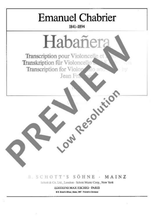 Digital Sheet Music for Habanera by Emmanuel Chabrier scored for Cello And Piano; id:482923