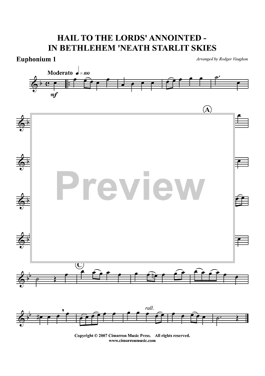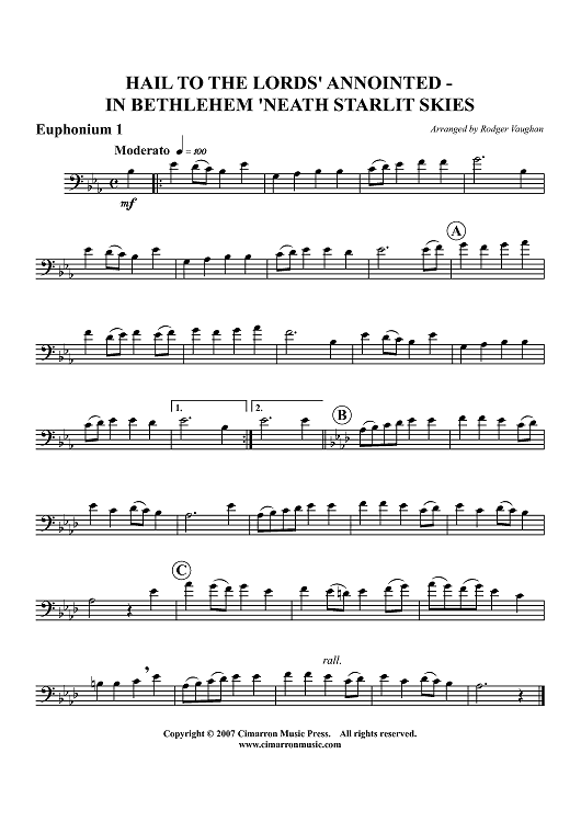 Digital Sheet Music for Hail to the Lords' Annointed - In Bethlehem 'Neath Starlit Skies - Euphonium 1 BC/TC by Rodger Vaughan, Traditional scored for Tuba Quartet; id:413487