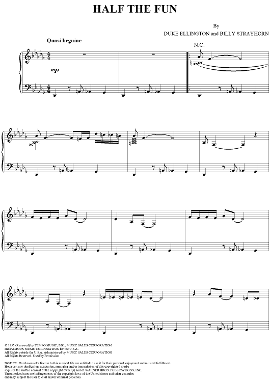 Digital Sheet Music for Half The Fun by Duke Ellington, Billy Strayhorn scored for Piano Solo; id:270535