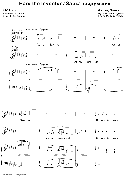 Digital Sheet Music for Hare the Inventor. Ah! Hare! by , M. Sadovsky, Gennady Gladkov scored for Piano/Vocal; id:403820
