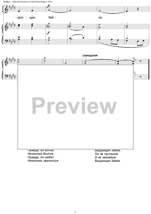 "Hare the Inventor. In Our Forest" Sheet Music by Gennady Gladkov