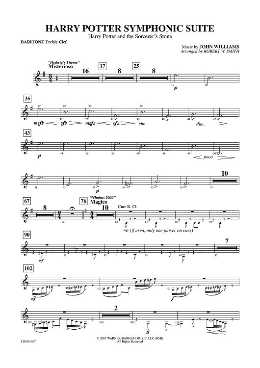 Digital Sheet Music for Harry Potter Symphonic Suite - Baritone TC by John Williams, Robert W. Smith scored for Concert Band; id:320036