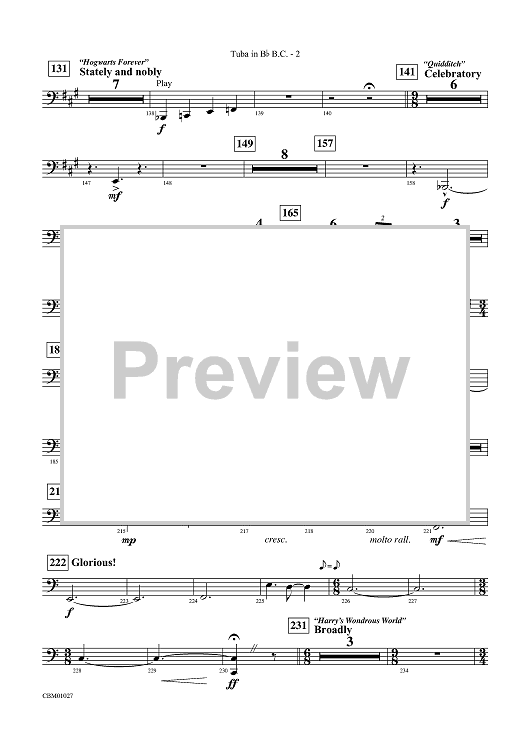 "Harry Potter Symphonic Suite - Tuba in B-flat BC" Sheet Music by John Williams