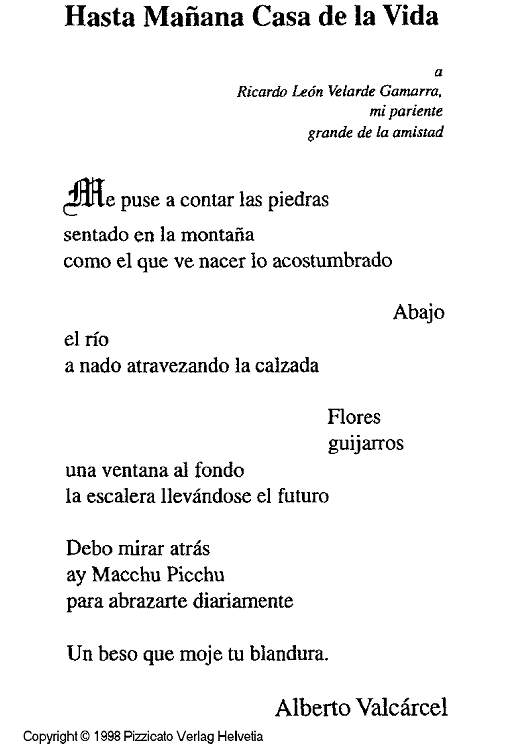 "Hasta manana casa de la vida" Sheet Music by Alejandro Núñez Allauca