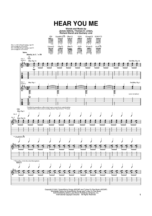 Digital Sheet Music for Hear You Me by James Adkins, Richard Burch, Jimmy Eat World, Tom Linton scored for Guitar Tab; id:369848