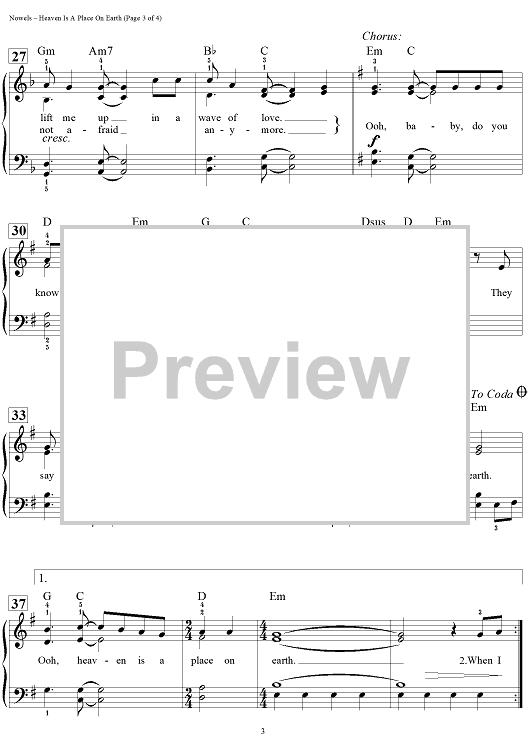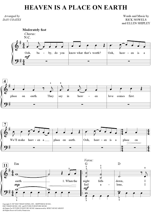 Digital Sheet Music for Heaven is a Place on Earth by Dan Coates, Rick Nowels, Ellen Shipley scored for Easy Piano/Vocal/Chords; id:454164