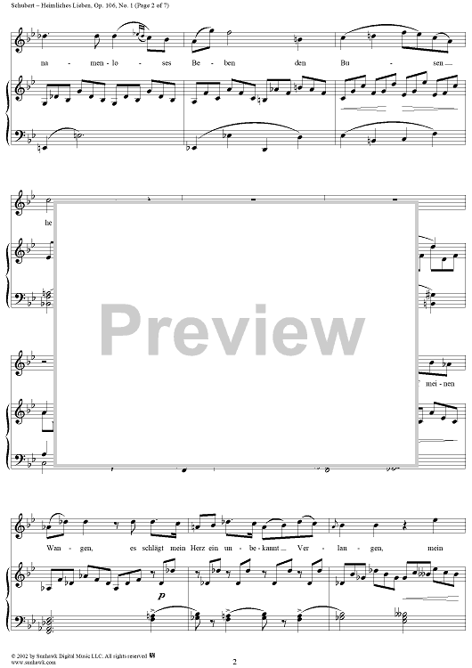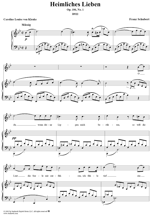 Digital Sheet Music for Heimliches Lieben, Op. 106, No. 1, D922 by Franz Schubert scored for Voice/Piano; id:256603