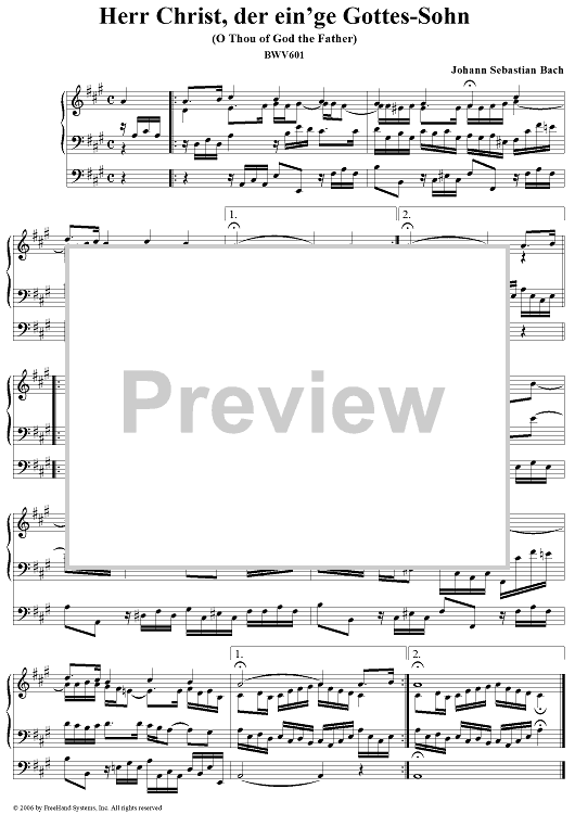 Digital Sheet Music for Herr Christ, der ein'ge Gottes-Sohn (O Thou of God the Father), No. 3 (from "Das Orgelbüchlein"), BWV601 by Johann Sebastian Bach scored for Organ Solo; id:318926