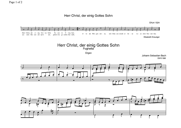 "Herr Christ, der einig Gottes Sohn BWV 698" Sheet Music by Johann Sebastian Bach
