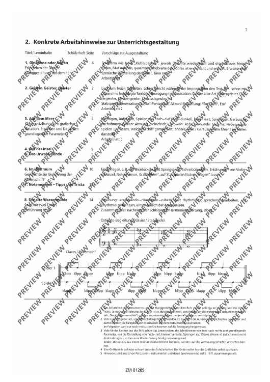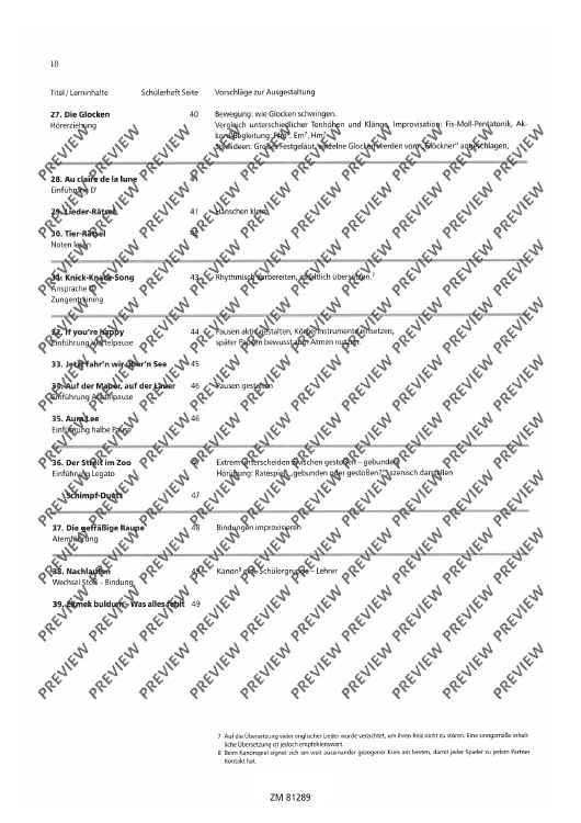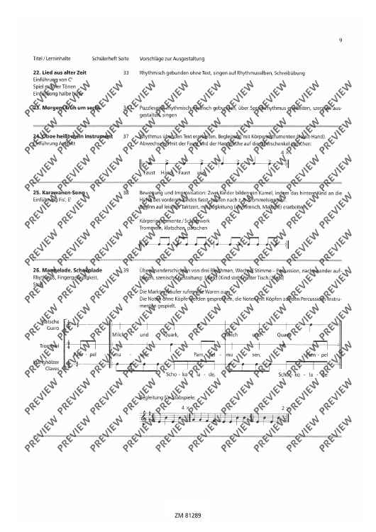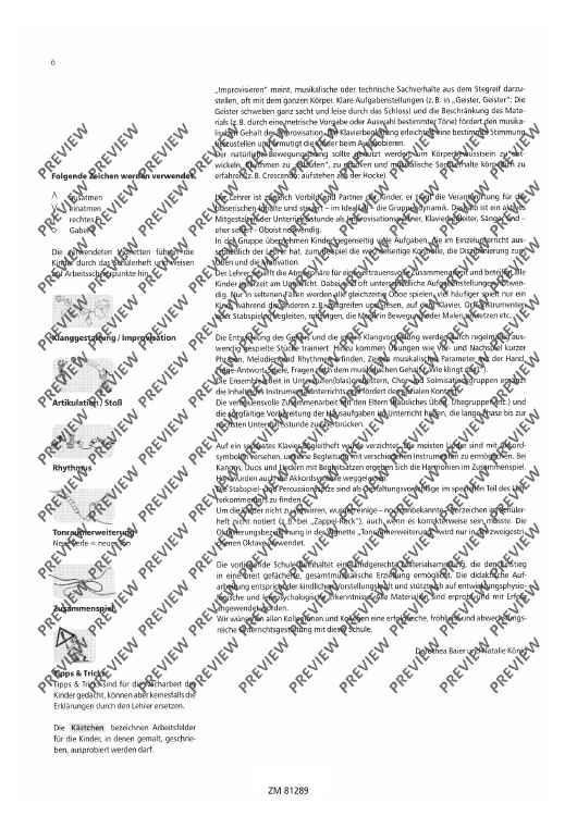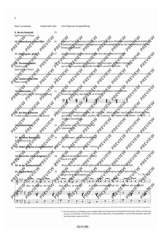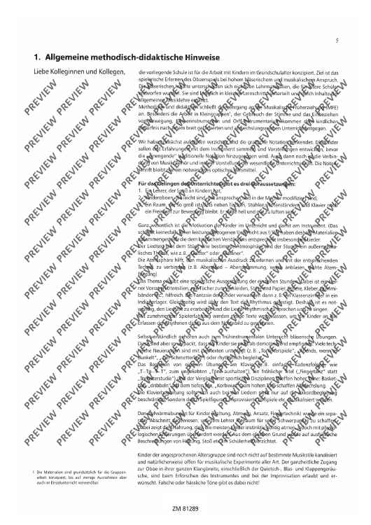 Kindgerechtes Material für eine gesamtmusikalische Erziehung, die direkt an Früherziehung und Grundausbildung anschließt, konzipiert für Kleingruppen, aber auch für den Einzelunterricht geeignet. Kinder der angesprochenen Altersgruppe sind noch nicht auf bestimmte Musikstile festgelegt und offen für musikalische Experimente aller Art: Quietsch-, Blas- und Klappengeräusche sind beim Erforschen des Instruments und bei der Improvisation nicht nur erlaubt sondern erwünscht. Noten werden erst nach und nach gelernt, zu Beginn steht die grafische Notation im Vordergrund. Improvisation und Klanggestaltung, Bewegung und Stimme sowie Zusammenspiel mit anderen sind wesentliche Elemente.