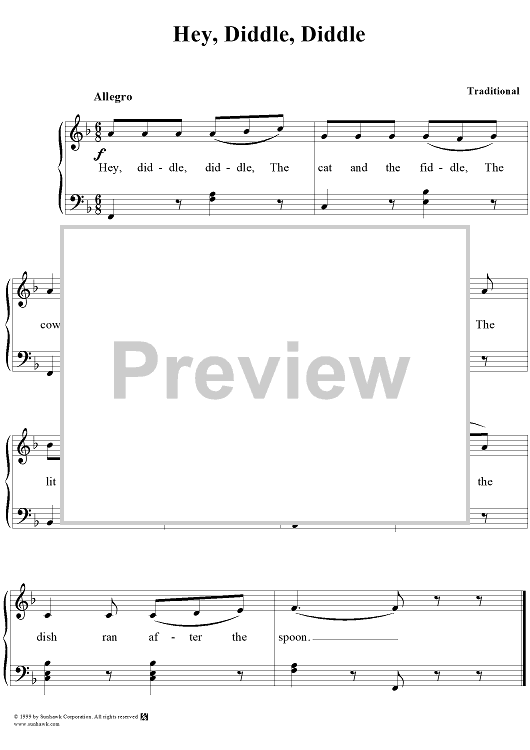 "Hey, Diddle, Diddle" Sheet Music by Traditional