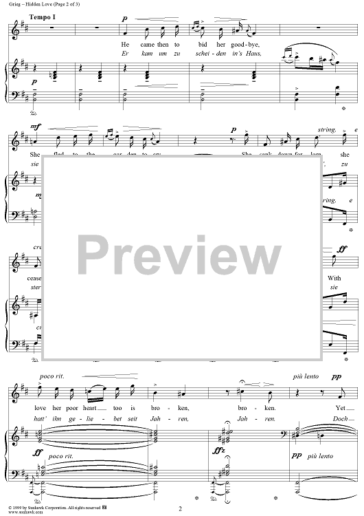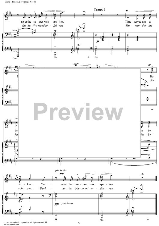 Digital Sheet Music for Hidden Love by Edvard Grieg, Bjornstjerne Björnson scored for Voice/Piano; id:113173