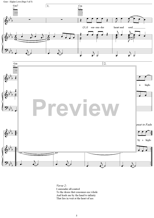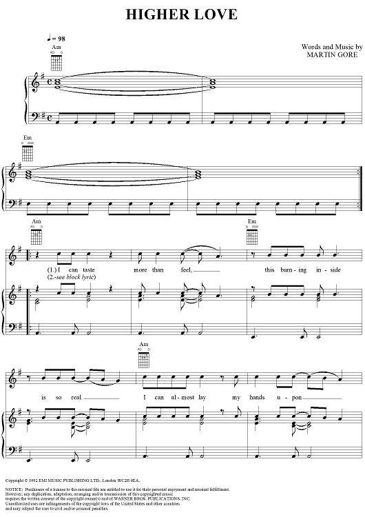 Digital Sheet Music for Higher Love by Martin Gore, Depeche Mode scored for Piano/Vocal/Chords; id:267958