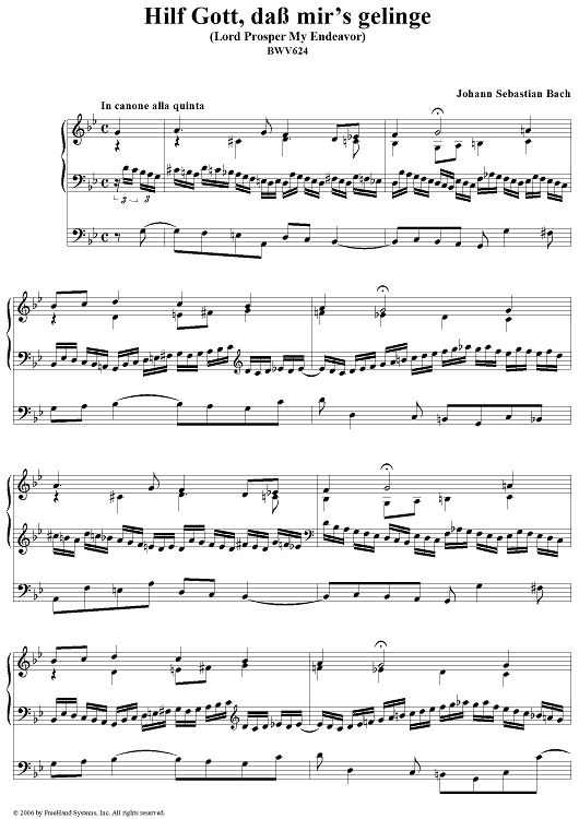 Digital Sheet Music for Hilf Gott, daß mir's gelinge (Lord Prosper My Endeavor), No. 26 (from "Das Orgelbüchlein"), BWV624 by Johann Sebastian Bach scored for Organ Solo; id:318947