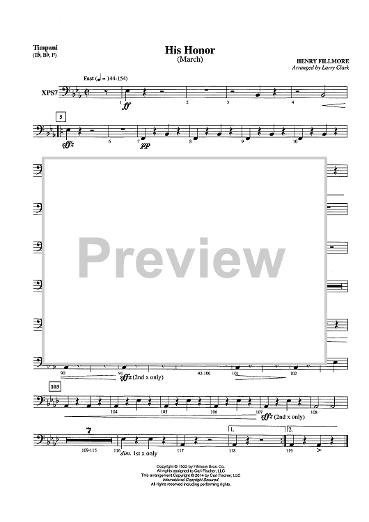 Digital Sheet Music for His Honor (March) - Timpani by Larry Clark, Henry Fillmore scored for Concert Band; id:451402