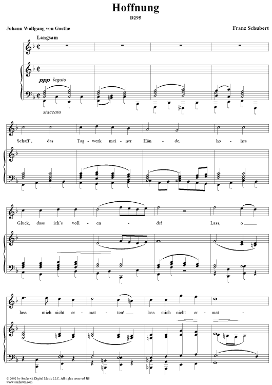 Digital Sheet Music for Hoffnung, D295 by Franz Schubert scored for Voice/Piano; id:256606