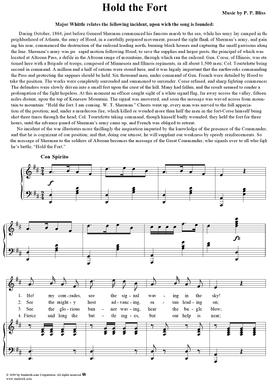 Digital Sheet Music for Hold the Fort by Philip P. Bliss scored for Voice/Piano; id:275066