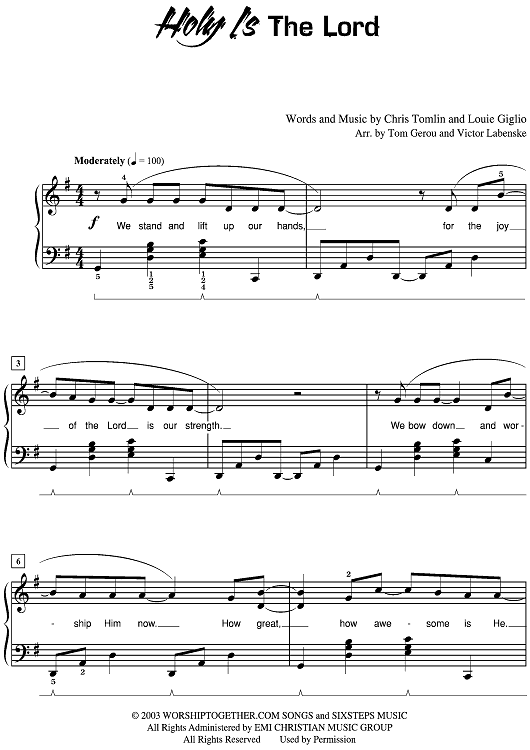 Digital Sheet Music for Holy Is the Lord by Chris Tomlin, Louie Giglio, Tom Gerou, Victor Labenske scored for Piano/Vocal; id:498016