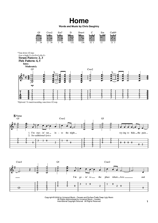 Digital Sheet Music for Home by Chris Daughtry, Daughtry scored for Easy Guitar Tab; id:401515