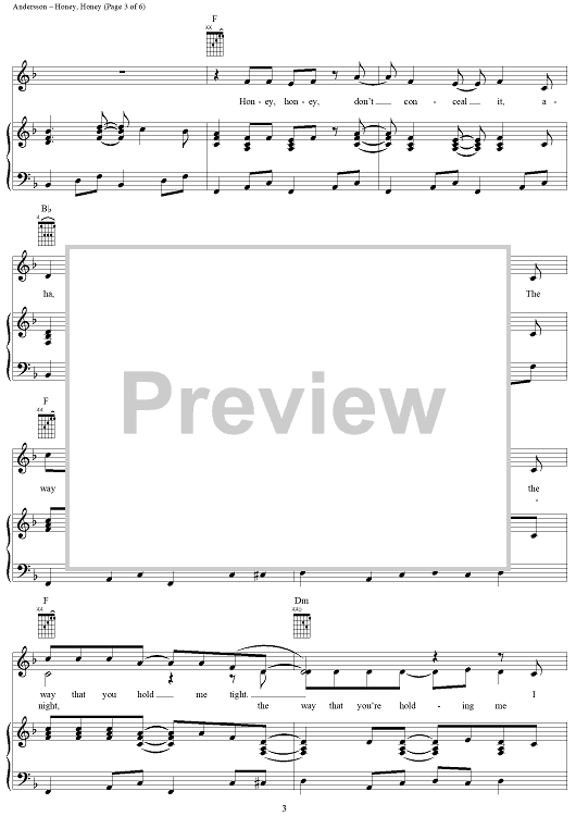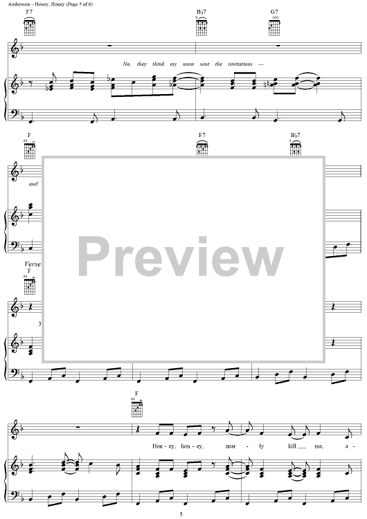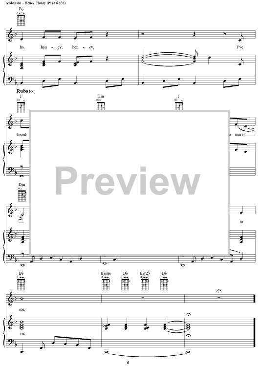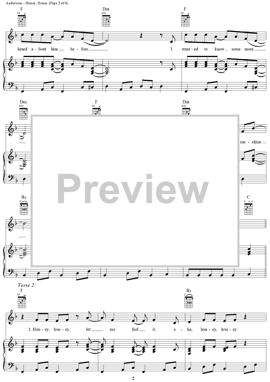 Digital Sheet Music for Honey, Honey by ABBA, Benny Andersson, Bjorn Ulvaeus, Stig Anderson scored for Piano/Vocal/Chords; id:293336
