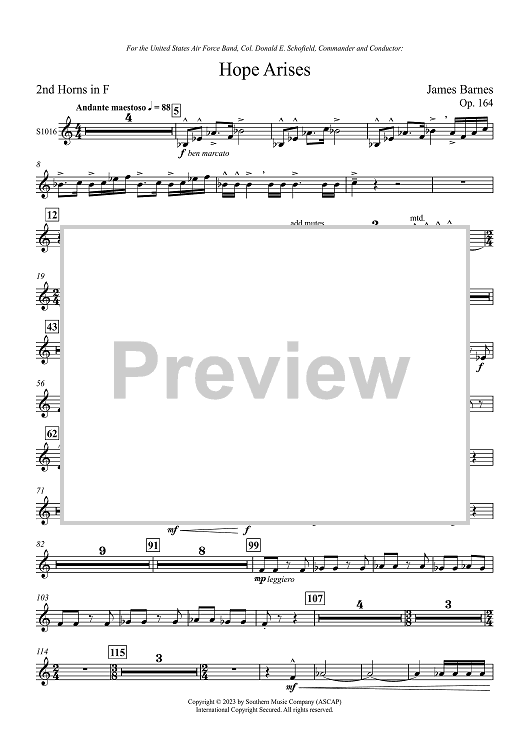 Digital Sheet Music for Hope Arises - F Horn 2 by James Barnes scored for Concert Band; id:503407