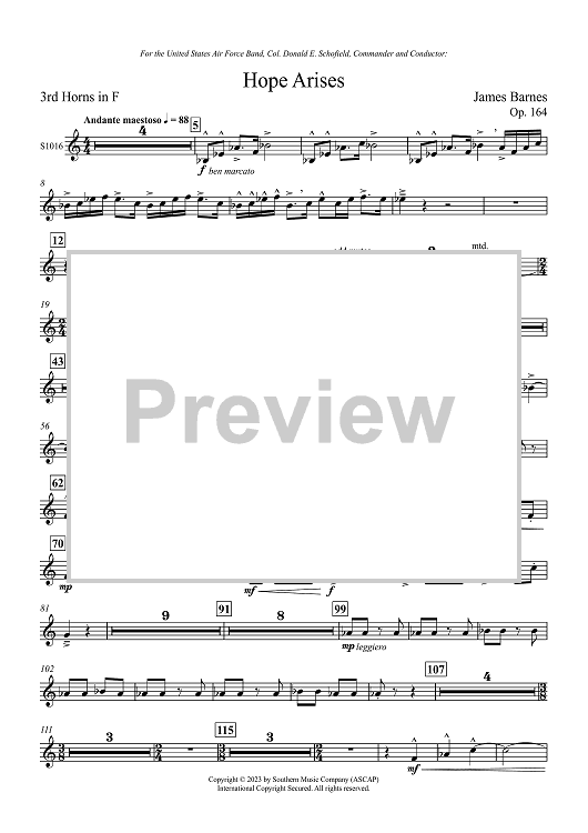 "Hope Arises - F Horn 3" Sheet Music by James Barnes
