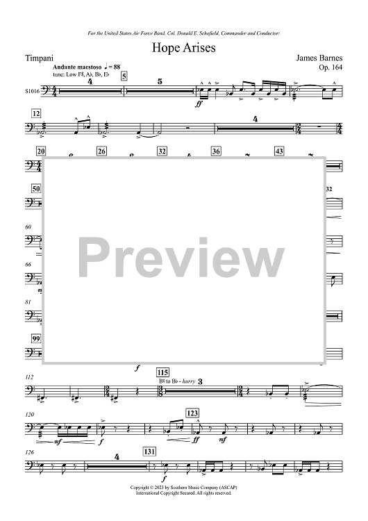 Digital Sheet Music for Hope Arises - Timpani by James Barnes scored for Concert Band; id:503418