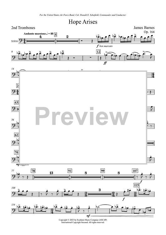 Digital Sheet Music for Hope Arises - Trombone 2 by James Barnes scored for Concert Band; id:503411