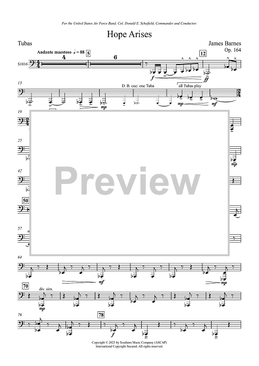 Digital Sheet Music for Hope Arises - Tuba by James Barnes scored for Concert Band; id:503416