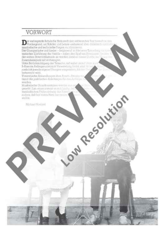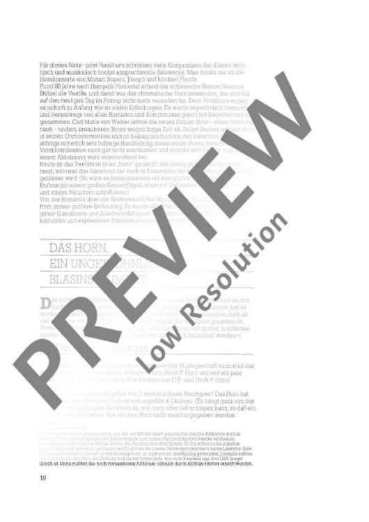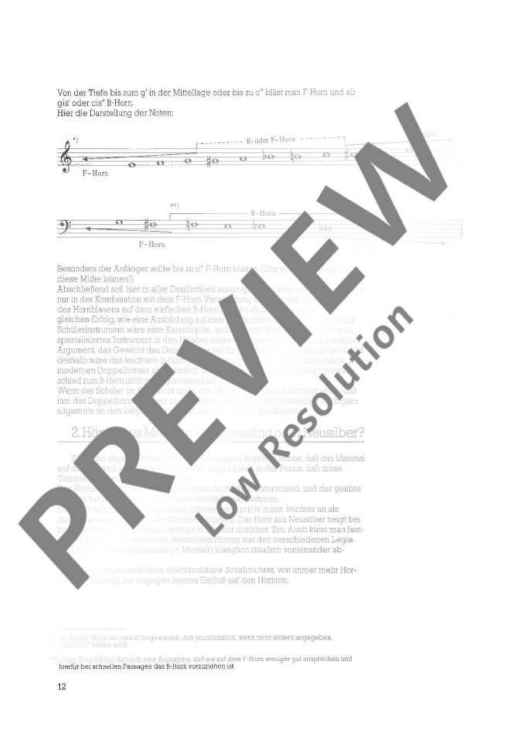 In diesem Lehrwerk wird der erklärende Text bewusst in den Vordergrund gerückt. Schüler und Lehrer werden umfassend über didaktisch-methodische, musikalische und technische Fragen informiert. Die Übungsstücke und Lieder - jeweils für Horn in B und F beginnend im kleinsten Tonumfang mit systematischer Einführung der Ventile - sollen den Spaß am Hornblasen fördern. Theoretische Abhandlungen über Ansatz, Atmung etc. sind an den Schluss gestellt, damit die praktischen Anleitungen für den Anfänger nicht unterbrochen werden. Musikalische Grundkenntnisse werden aus zweierlei Gründen vorausgesetzt: Zum einen erweist es sich häufig, dass Hornschüler bereits in der musikalischen Früherziehung das Notenlesen gelernt haben und zum anderen, dass bei vielen Horn das zweite Instrument ist, das sie spielen wollen. Im 2. Band findet sich geeignetes Unterrichtsmaterial sowie entsprechende Literatur, womit der gerade den Anfangsschwierigkeiten entwachsene Hornschüler seine Technik auf lockere und spielerische Weise stetig vervollkommnen kann. In allen 12 Tonarten gibt es leichtere und schwierigere Übungen, die Lehrer und Schüler dem jeweiligen Ausbildungsstand entsprechend auswählen können.