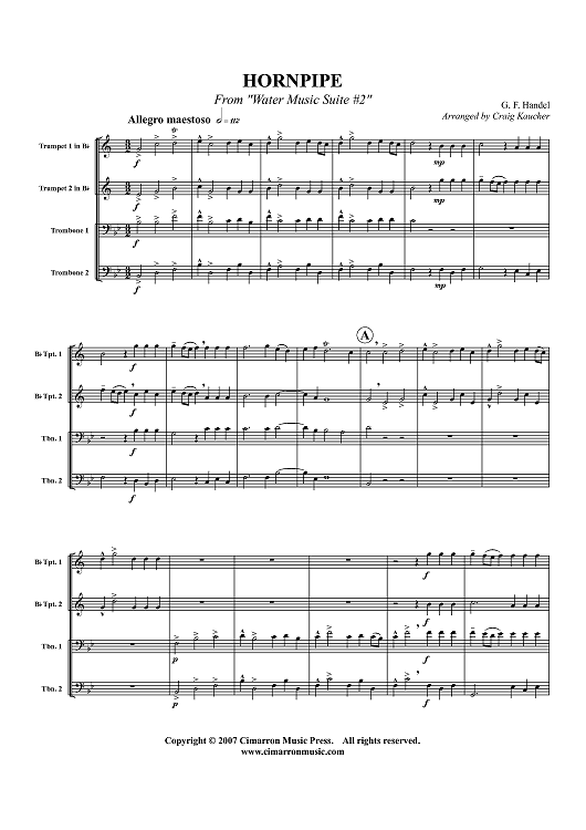 Digital Sheet Music for Hornpipe from "Water Music Suite #2" - Score by George Frideric Handel, Craig Kaucher scored for Brass Quartet; id:413903
