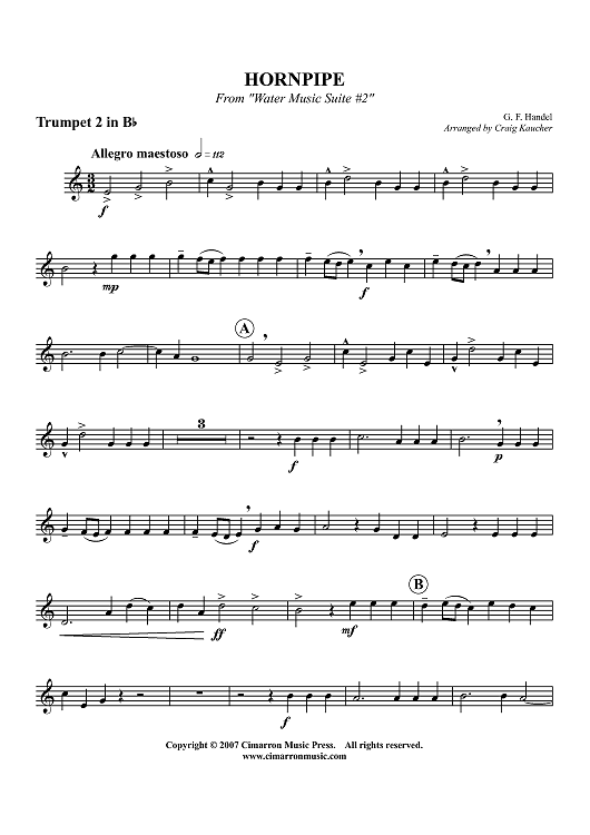Digital Sheet Music for Hornpipe from "Water Music Suite #2" - Trumpet 2 in Bb by George Frideric Handel, Craig Kaucher scored for Brass Quartet; id:413905