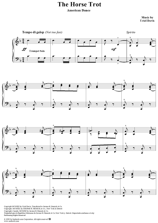 Digital Sheet Music for Horse Trot (American Dance) by Uriel Davis scored for Piano/Vocal; id:271921